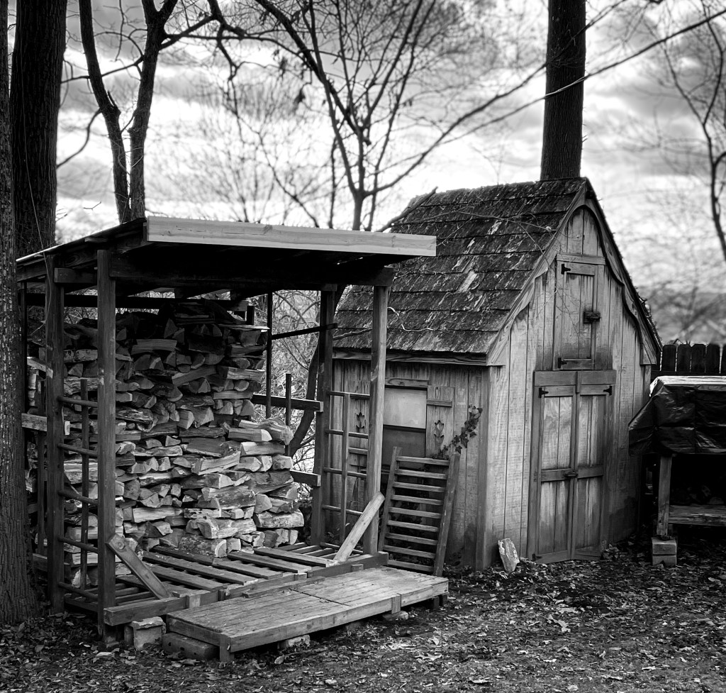 I’ve moved the woodpile around the yard over the twenty-five years we’ve lived here, usually in relation to the trees that fell and needed cutting, splitting, and stacking. I’ve gotten better at ensuring most of the wood makes it to the fireplace, though early on I left some touching the ground on the bottom of the pile, not realizing that it would rot well before I’d burn the pieces above.
