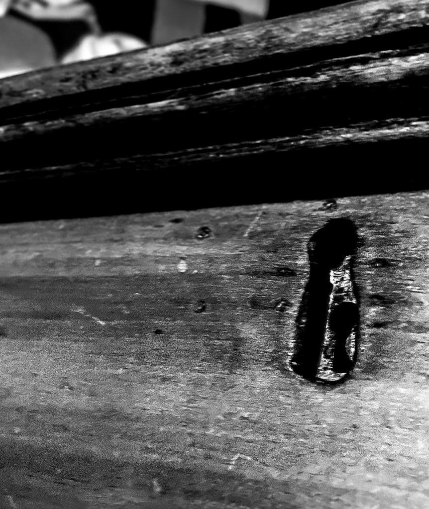 At that point we heard a sharp clunk, the sound of a marble landing on a wood floor. Cathy cast her light on the ground searching until she found a dark round object in the same spot she’d found the key. She held it out for us, a small class ring in the palm of her hand. Quietly, she lifted the lid of the chest and placed the ring inside, waiting for the next owner to place it on their finger as they climbed into the chest never to be seen again save their ghostly finger curling over and over from the keyhole.