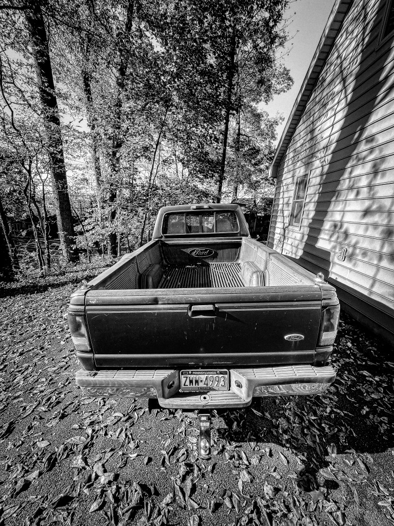 It is quite a truck though–a red 1994 Ford Ranger XLT with black trim, new tires and brakes, a five-speed manual transmission, and a key without a chip in it. It’s got some rust, the paint has some issues, and parts of it are held in place with duct tape.