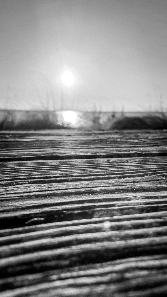 Wendy found our spot on Airbnb just south of Duck, a condo unit just forty feet off the Currituck Sound, the western side of the island. The no-waves, quiet side. A large picture window looked out on a wooden pier that went some hundred feet into the sound with a covered landing and two adirondack chairs. We spent a good amount of time on those chairs reading and sipping coffee.