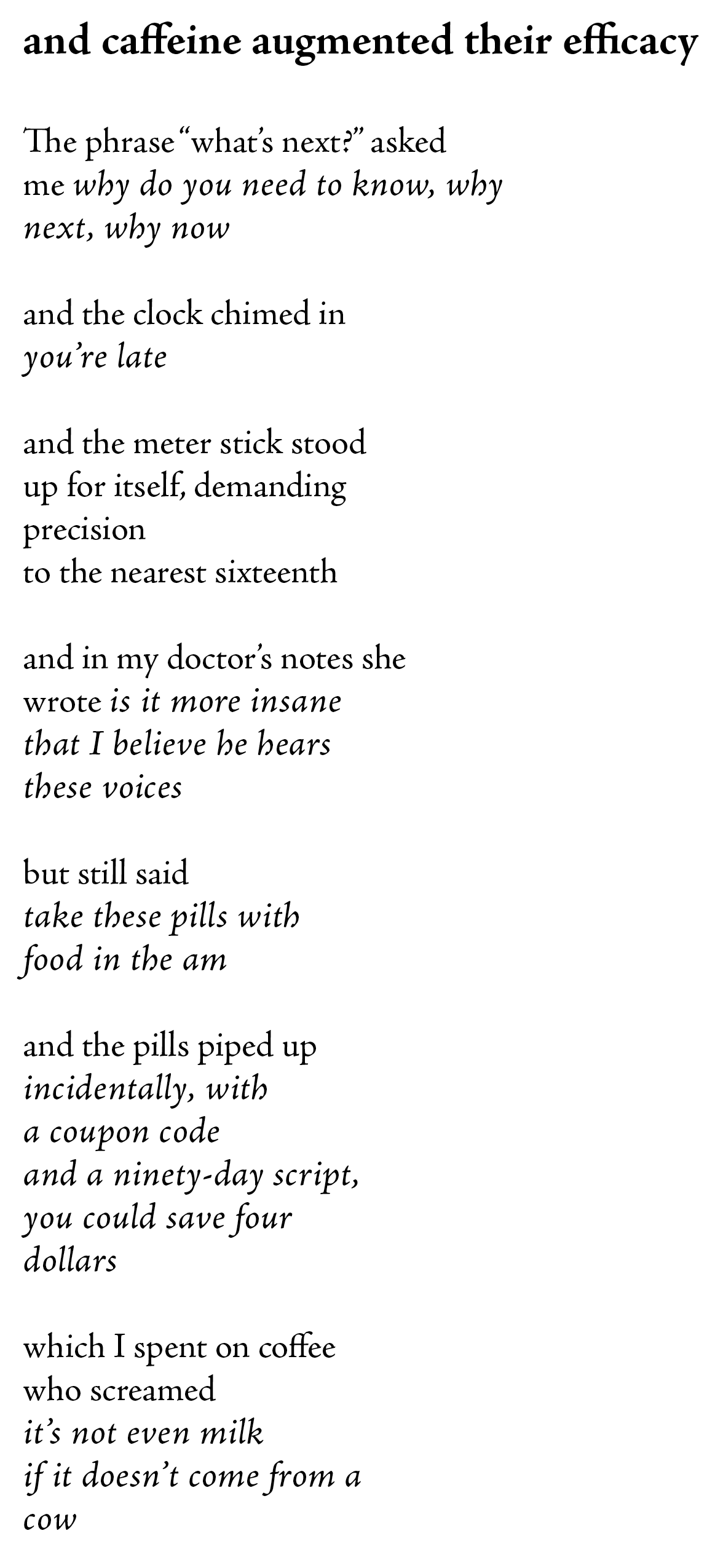 So I ended up with this poem, which is silly on its face, but I don’t think it is foolish. More, the poem is absurd and absurdity is much different than foolishness.