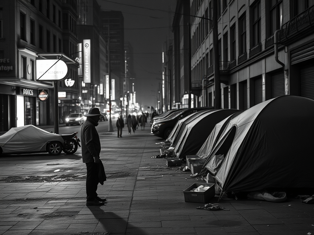 As for the AI generated image that I have been adding to these posts, I predict a city street and boxing gloves and a tent and a homeless person. Let’s see: