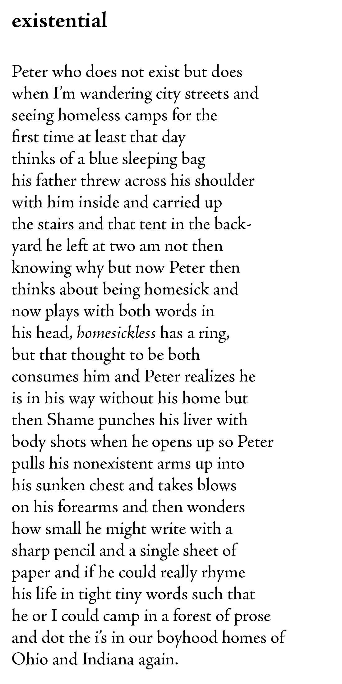 This poem isn’t an attempt to work through this overwhelming problem that our society faces and ignores. It is an attempt to talk about the emotional reaction that I had seeing them that cold afternoon.