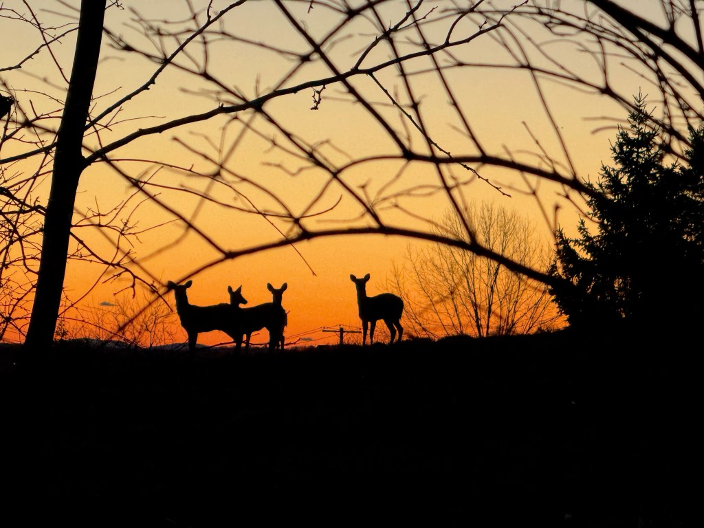 The featured photo I used here is of a few of the herd of deer that live in our woods here south of Lititz, Pennsylvania. I caught them at sunset returning from picking up my car after it got inspected. I pulled over to the side of the road and used the zoom feature for my phone’s camera which isn’t even close to an actual camera with a zoom lens.