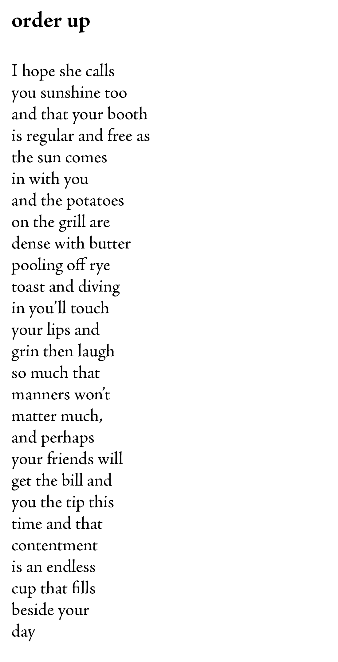 I shared this with my poetry mentor and though she offered suggestions, I also abandoned this poem as too meandering and lacking the feeling of an actual diner breakfast with friends.