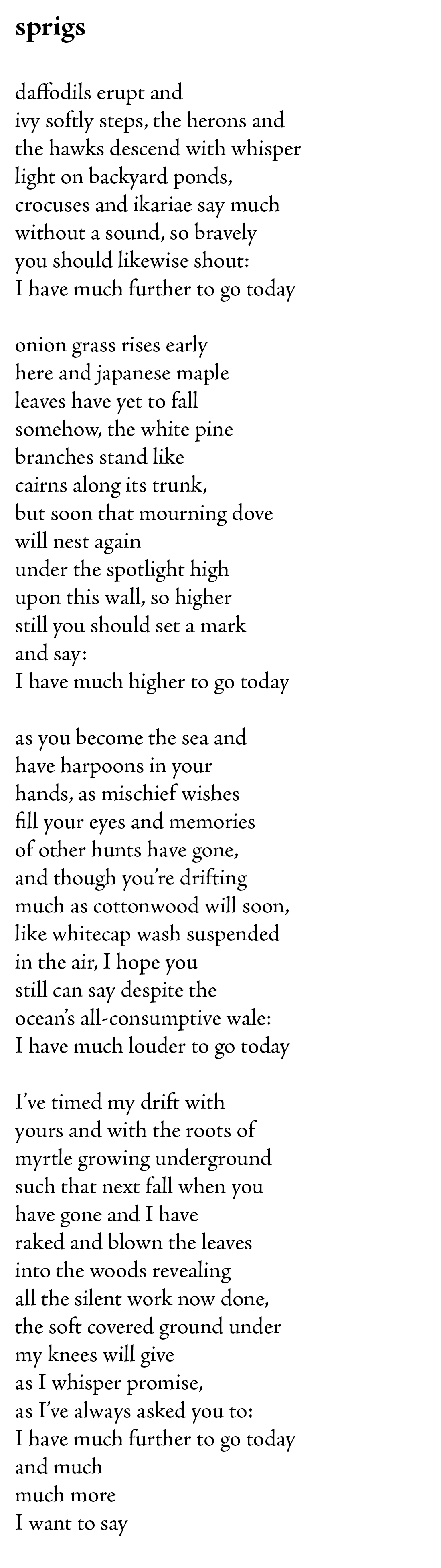 I’m going to write more about this poem, talk about some of the things I tried to do here, talk about the ocean imagery and the specific references to the natural world outside my house.