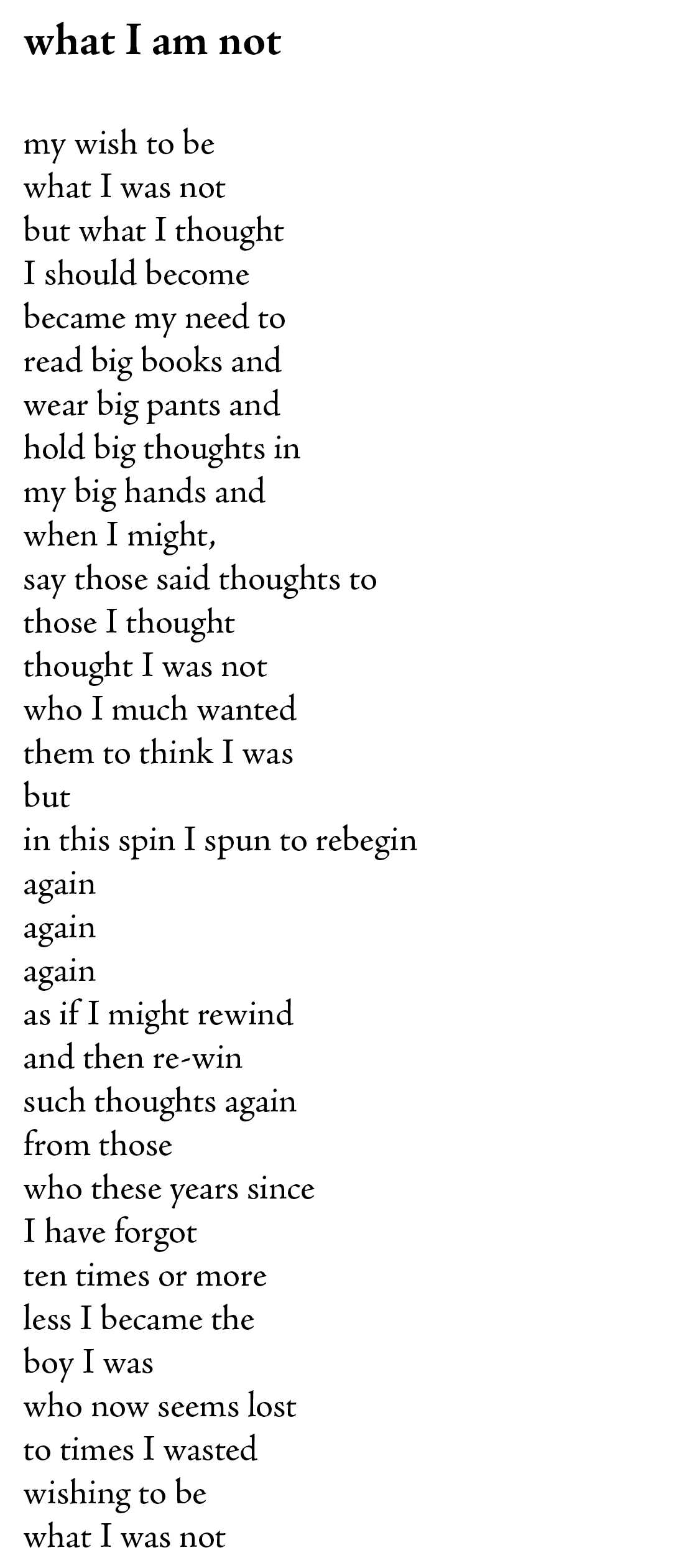 I read a few poems from the collection, which I have read through before, and was inspired to write the poem you have here, “what I am not”.