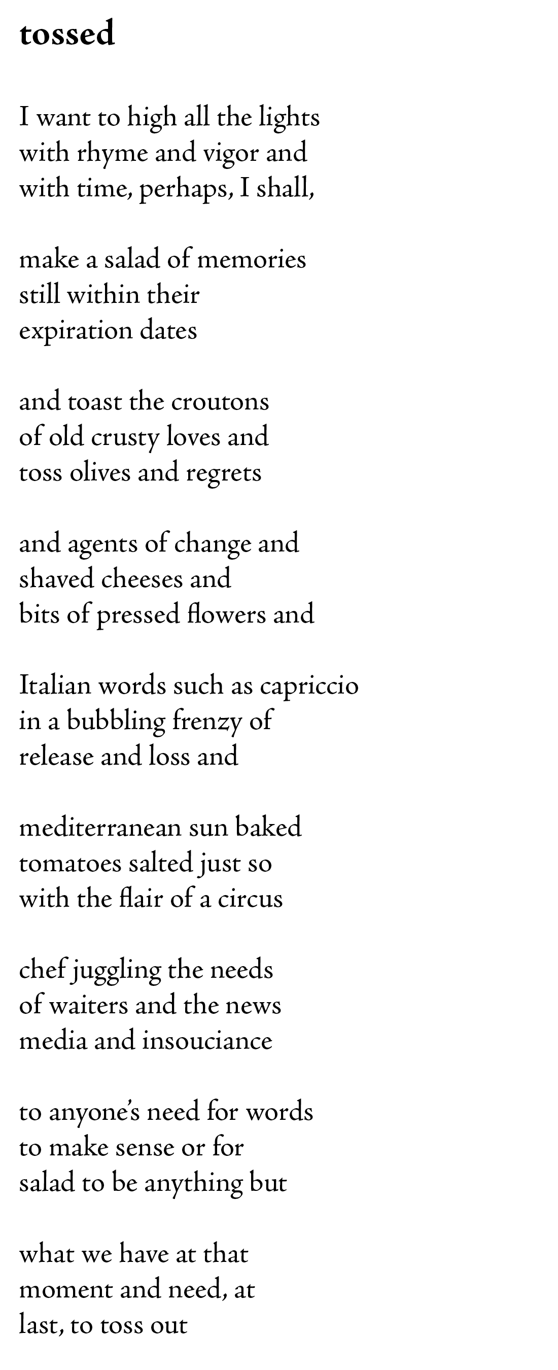 A more apt title for this poem might just be “word salad”, which is sort of what it is.