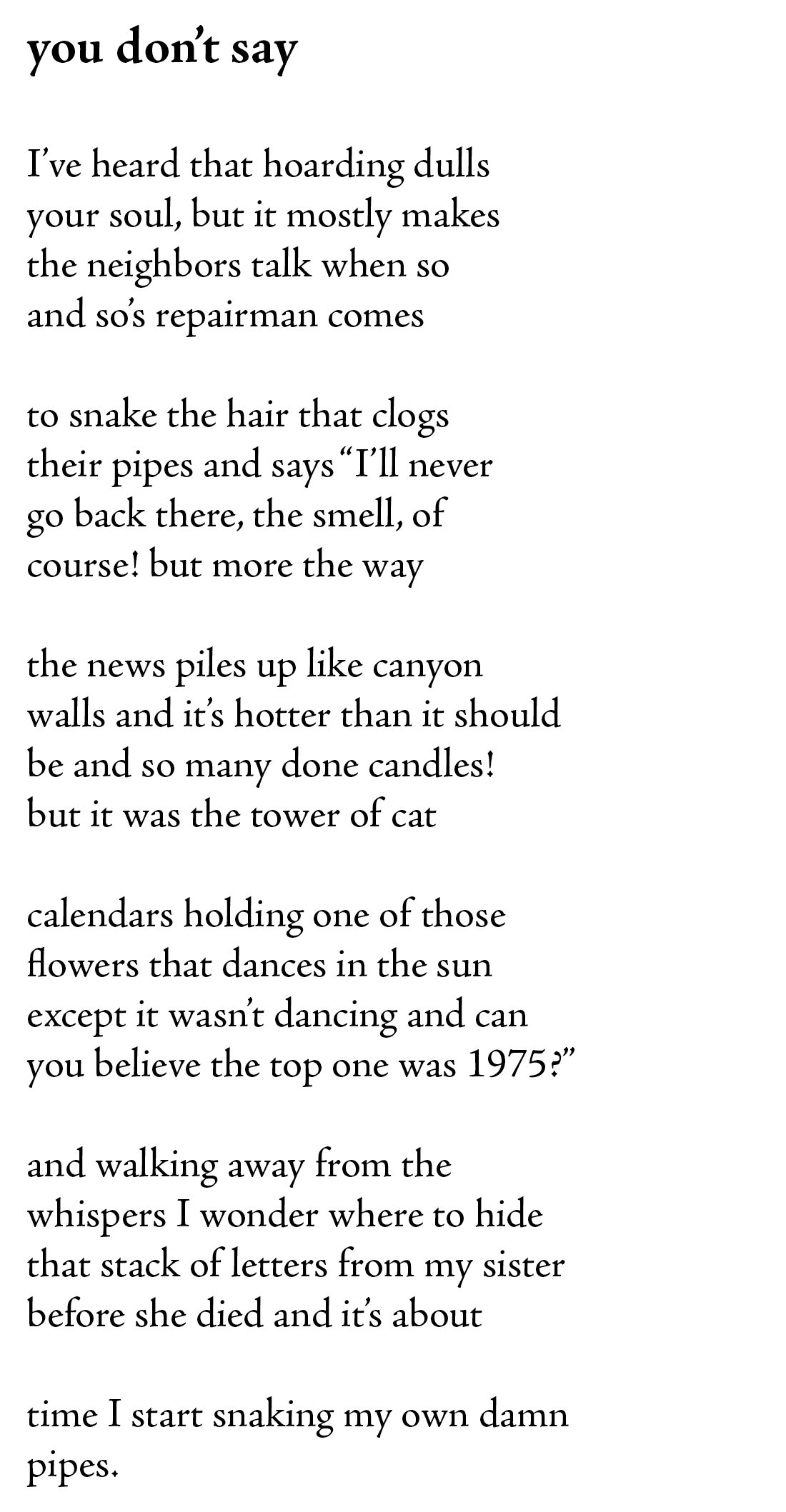 So I had these thoughts in my head this morning and the poem you read here popped out.