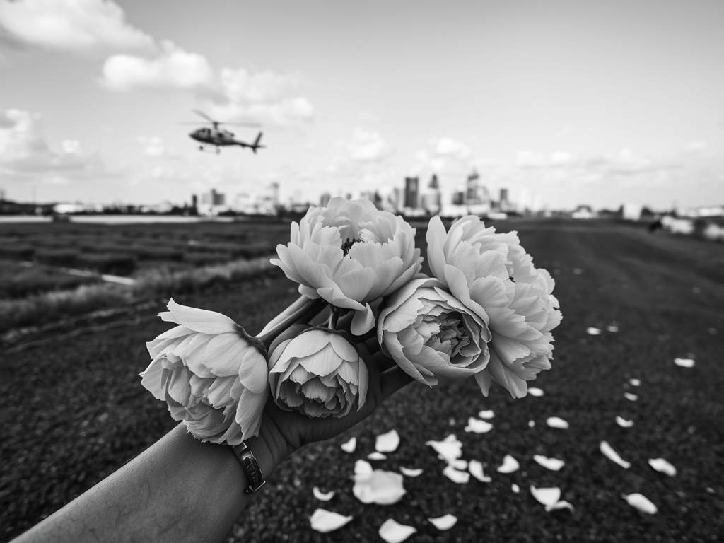 Here the flowers are literally given to “the rain” which we know from the poem was the answer to a question never asked. The narrator then walks away with the flowers in hand.