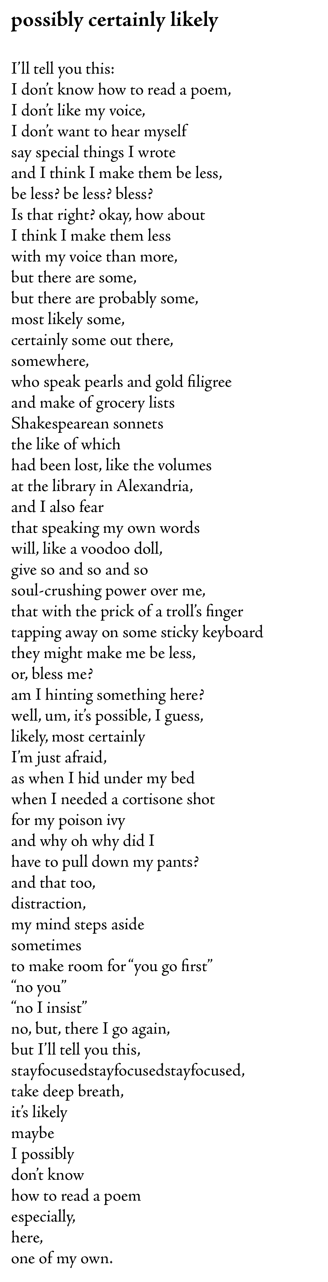 As you can see here I wrote a special poem that speaks directly to my fears.