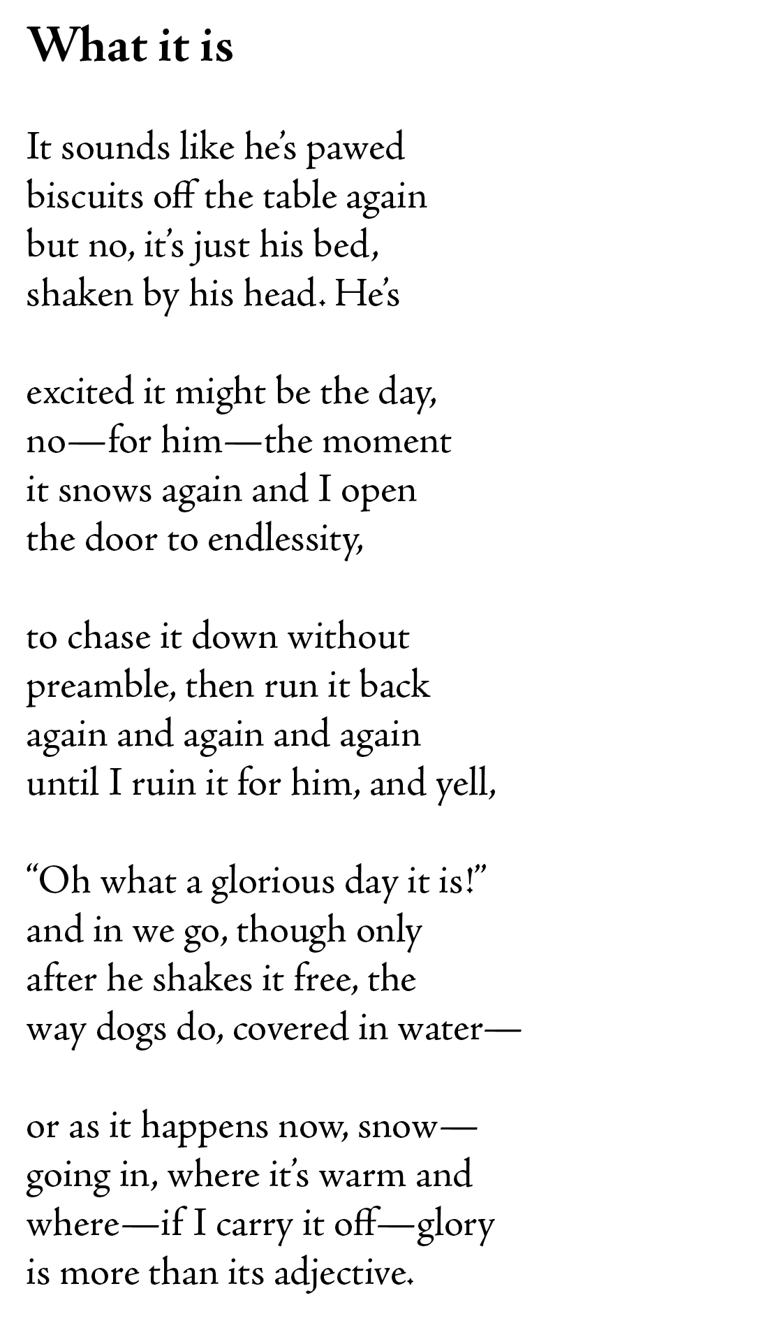 The poem never pins it down—and crucially, it doesn’t need to. The dog doesn’t care. The speaker does. That contrast is the poem’s quiet engine.
