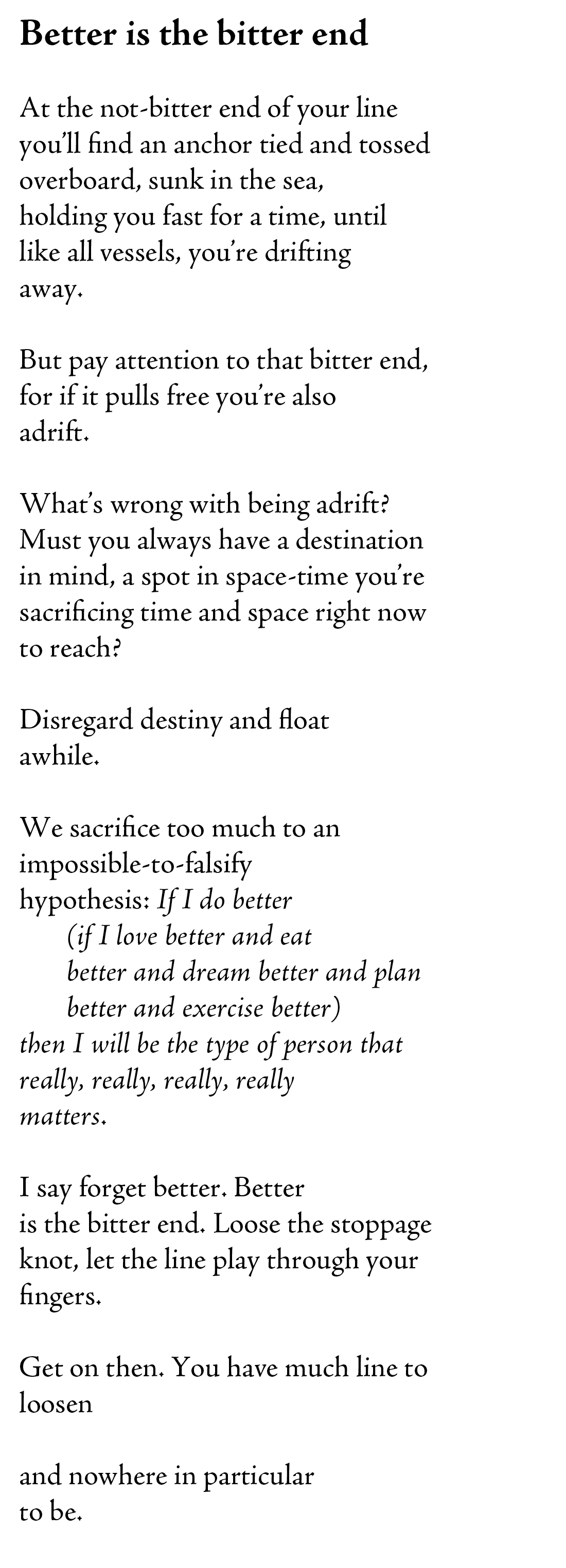Here is a good example of a poem that isn’t trying to be complicated but that has much more depth than “Better is the bitter end.”